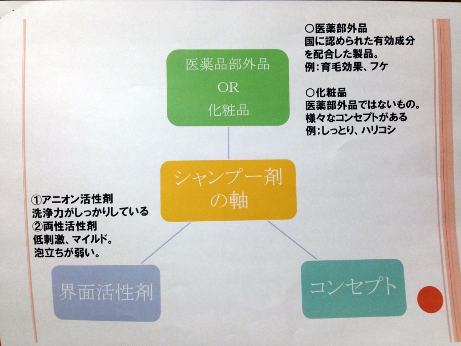 上に行くほど、軽い仕上がりで髪への残留度も軽い。下へ行くほど、コンディショニング力が強く、重たい仕上がりで、髪への残留度が高く、、、カラーやパーマをする際の薬剤の浸透の邪魔や頭皮(肌)への負担が増すと言われています。