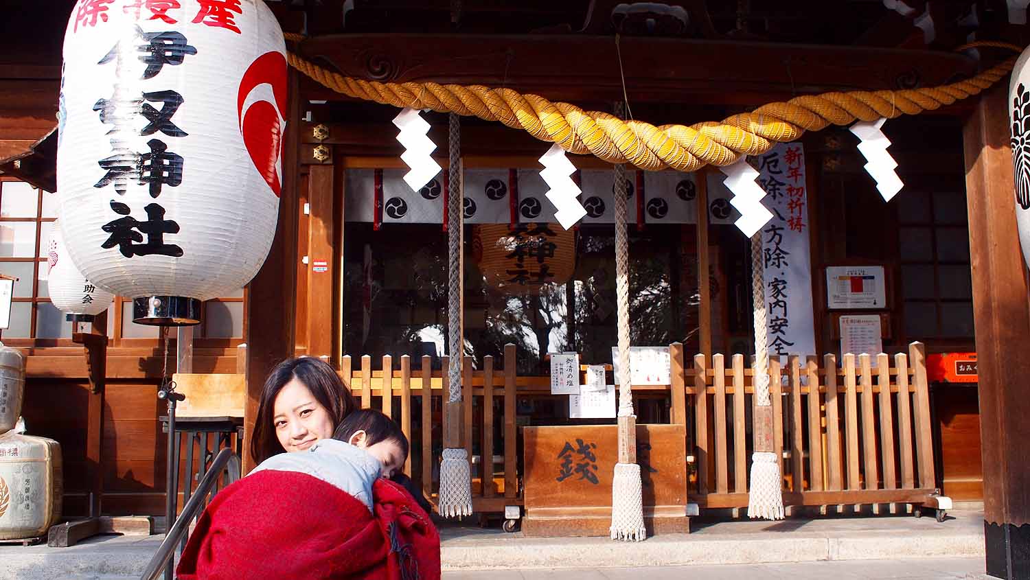 愛知では妊娠5ヶ月に入った最初の戌の日に神社で安産祈願をするのが慣習である。